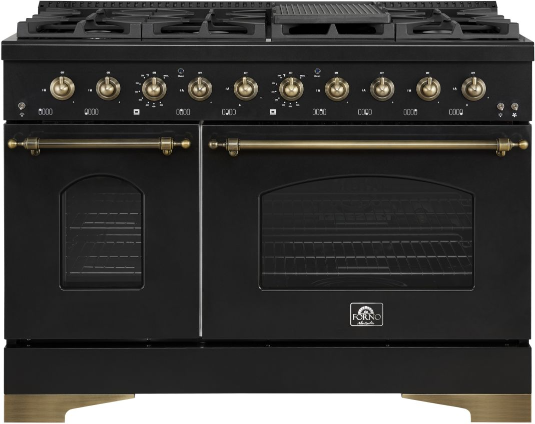 Bring style and power to your kitchen with the Forno Antico 48" Dual Fuel Range in black—where elegance meets exceptional performance. With 8 sealed burners and a total output of 94,000 BTU, it delivers the power and precision needed for any culinary challenge.Read More