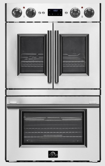 Introducing the 30 in. Gallico Double Wall Oven by Forno, a culinary powerhouse. Crafted in stunning stainless steel, the top oven's French doors unveil a lavish 3.68 cu. ft. interior with a mesmerizing blue speckled finish. Both ovens, each generously providing 3.68 cu. ft., combine to offer a grand total of 7.36 cu. ft.Read More