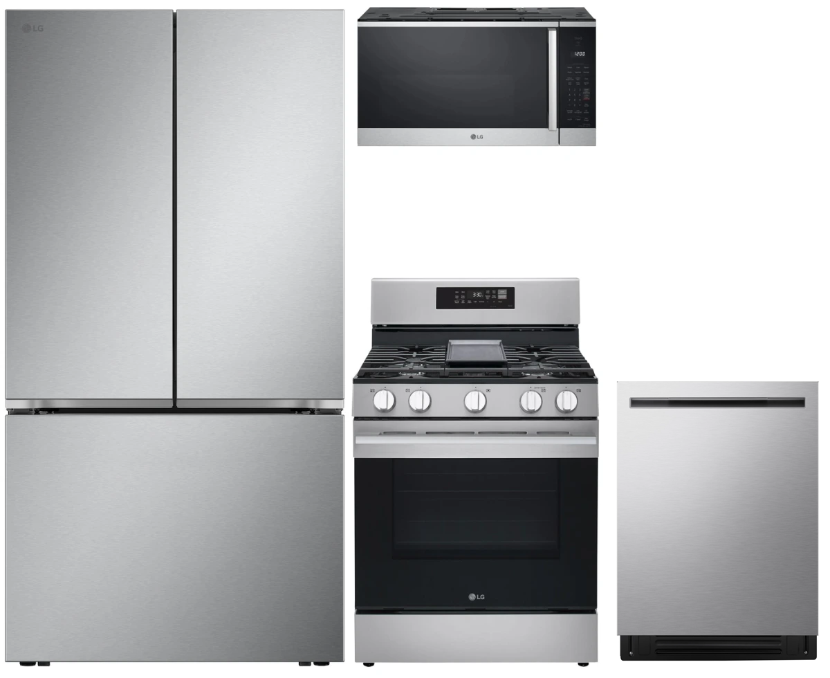 LG 4 Piece Kitchen Package-Stainless Steel with French Door Refrigerator, Free-Standing Gas Range, Built-In Dishwasher, and Over-The-Range Microwave.Read More