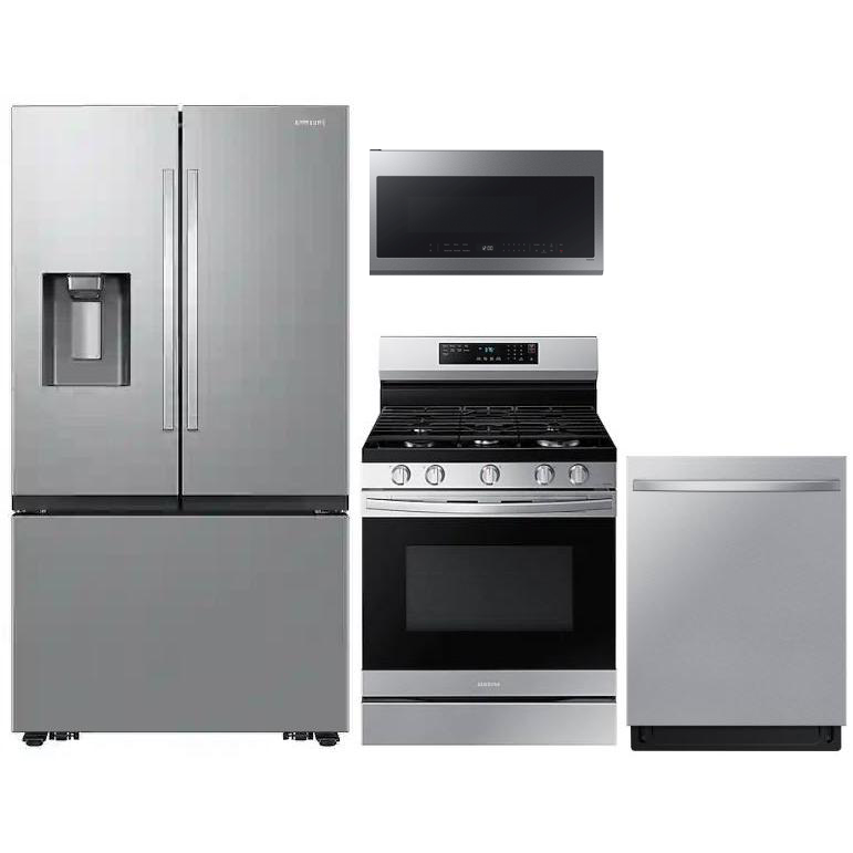 SamsungĀ® 4 Piece Kitchen Package Fingerprint Resistant Stainless Steel French Door refrigerator, free-standing gas range, built-in dishwasher and over-the-range microwave.Read More