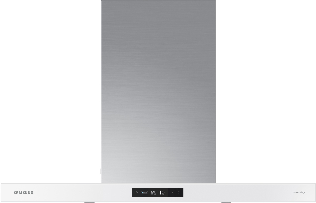 Our stunning Bespoke 36" wall mount range hood in stainless steel with Clean White panel delivers powerful ventilation with minimal noise and includes LCD display with touch control. First-of-its kind Triple Air Sensor detects air quality whether on or off and triggers range hood ventilation power level.Read More