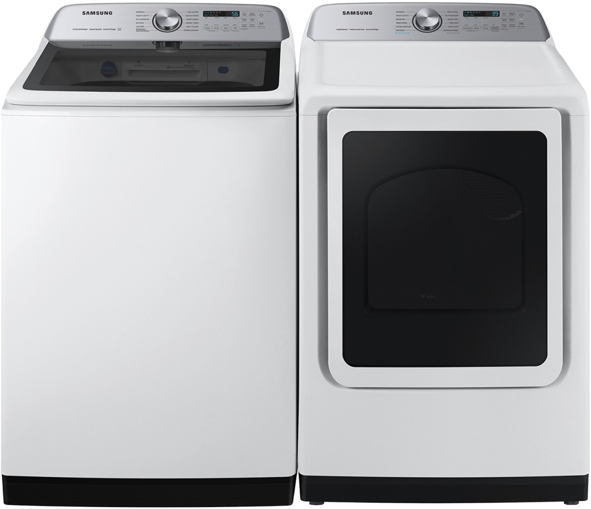 Samsung White Impeller Top Load Washer and Electric Dryer Laundry Pair with 5.2 Cu. Ft. Impeller Top Load Washer and 7.4 Cu. Ft. Front Load Electric Dryer.Read More